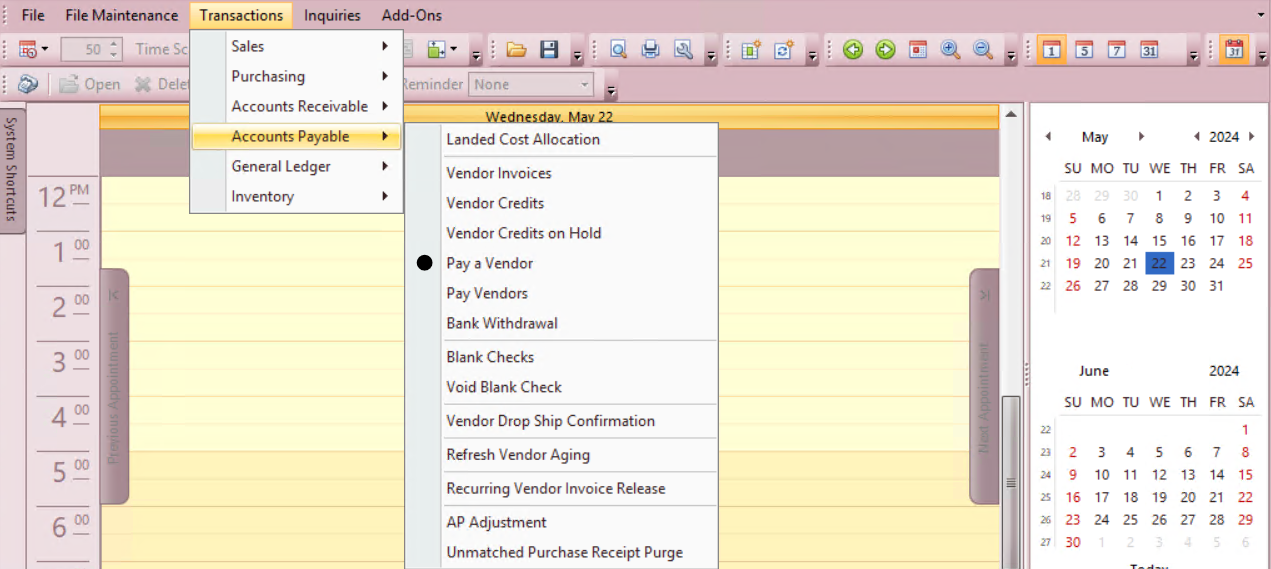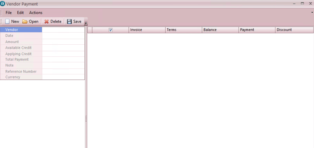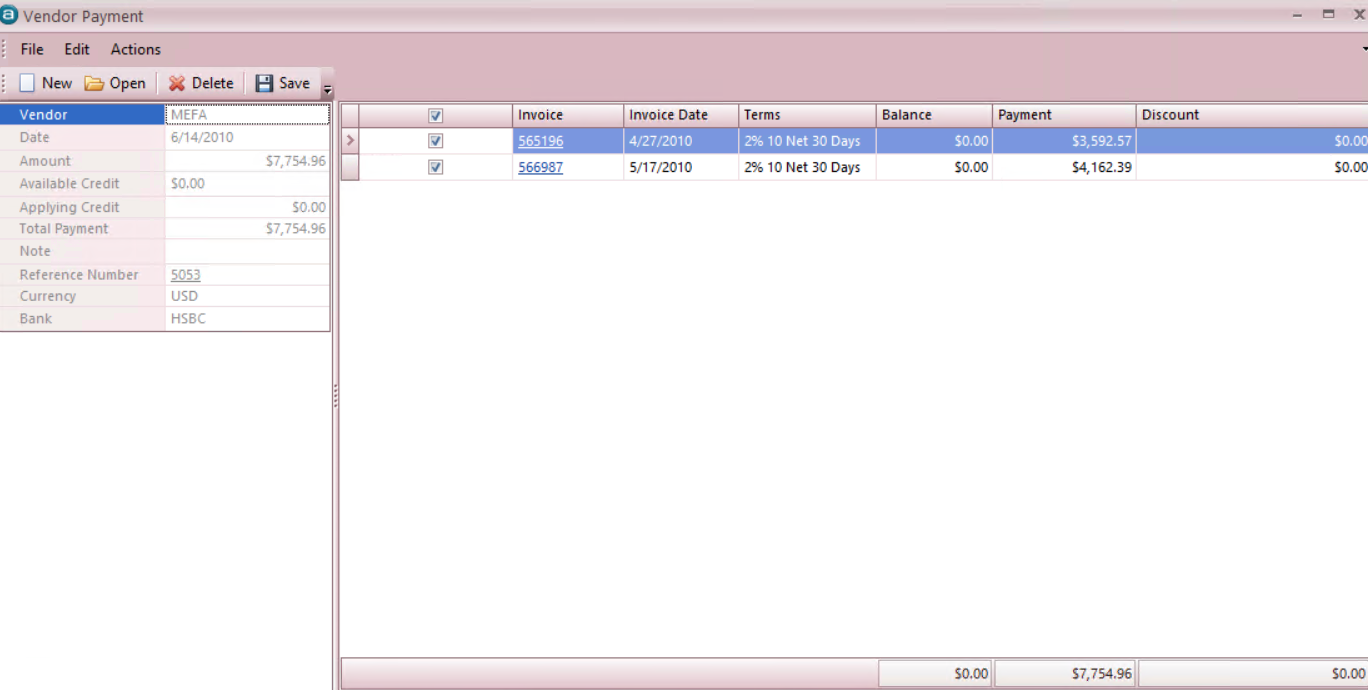- Open > Search by the Vendor Name OR Payment Amount OR "%" for the entire list of Vendor Payments.