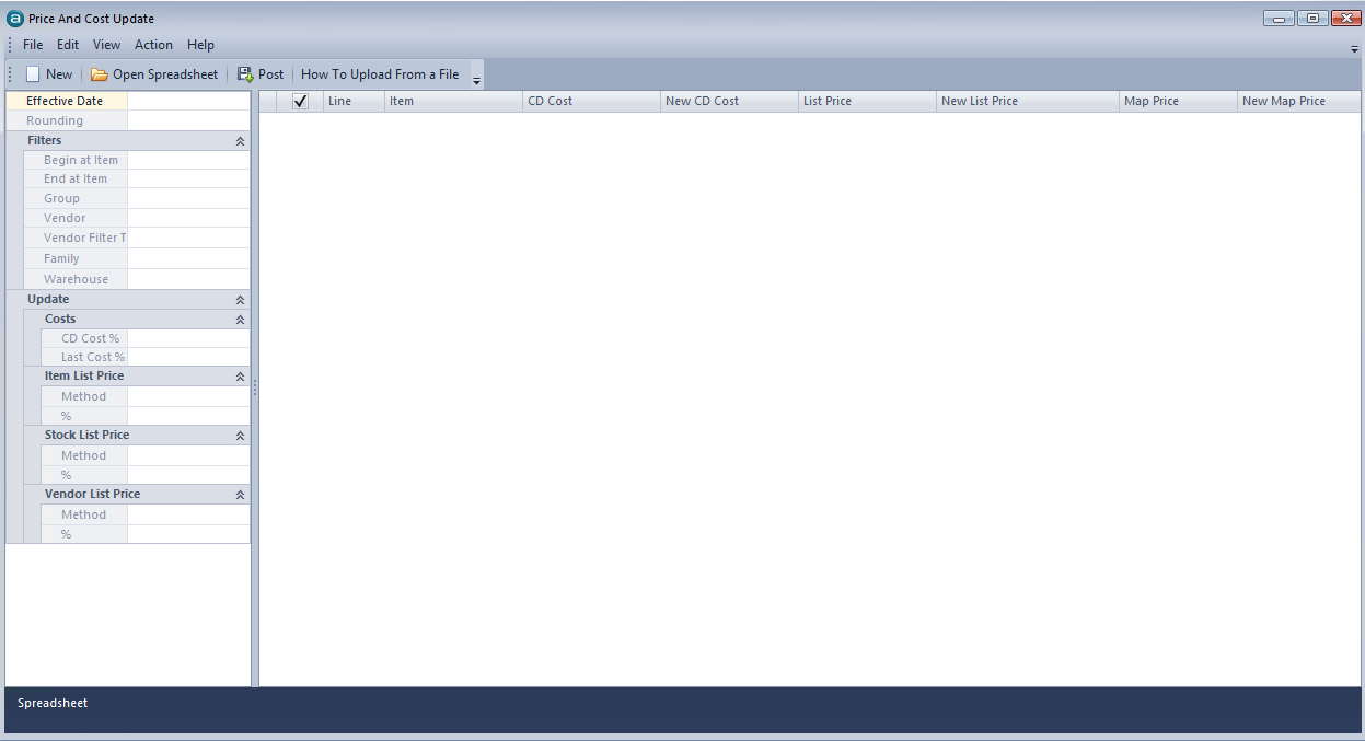 and choose the Upload File (in our example the file name is SampleVendorListPriceUpload.xlsx)
